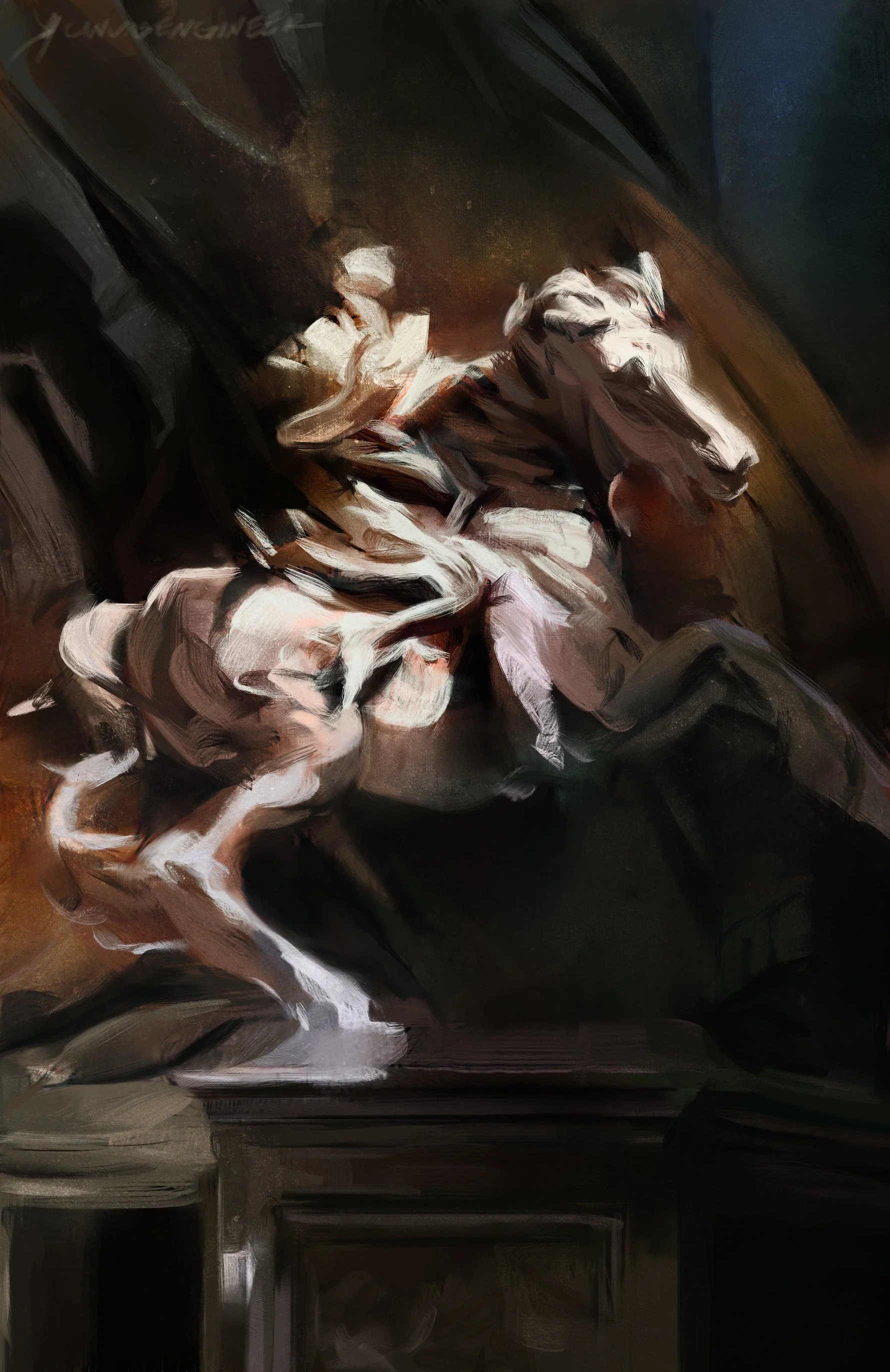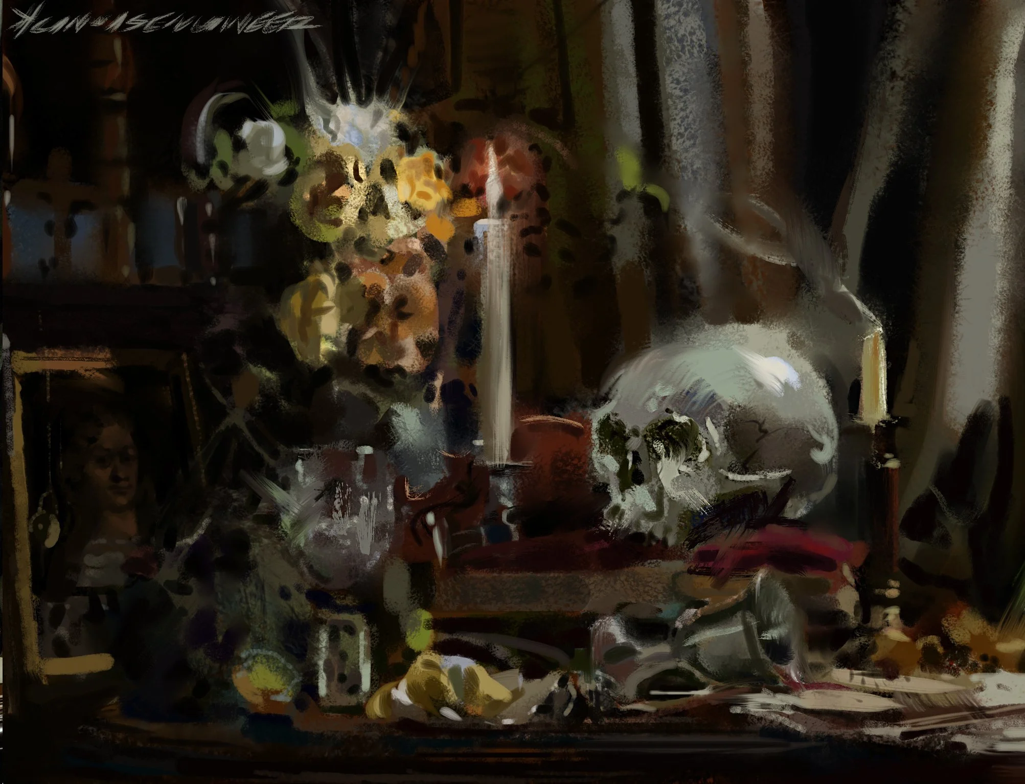 Still life’s have a special role in allowing me to study material differences and historical artifacts of design; They are less about a specific personable feature and more about intricate brushwork and play.